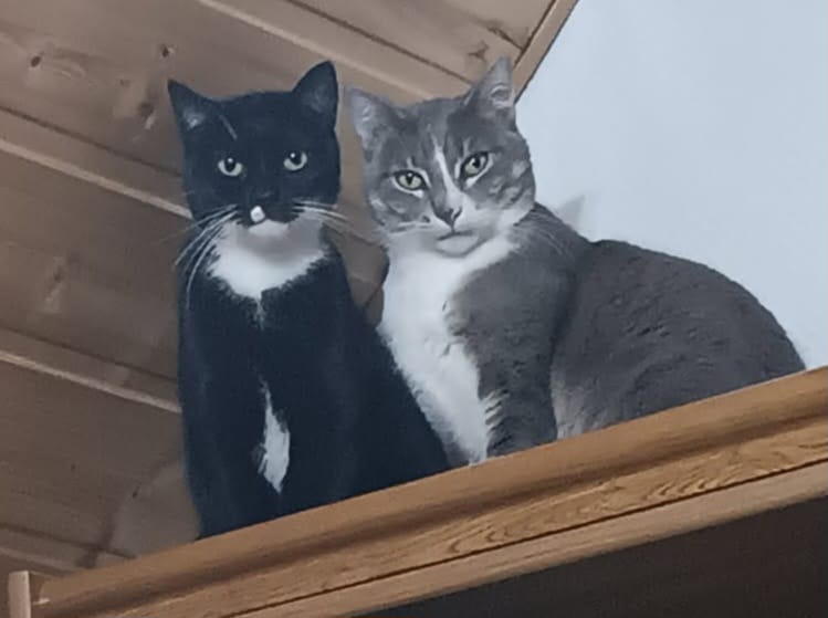 Ce sont deux chats qui ne désirent pas être caressés mais savent cohabiter avec les humains. Ils sont discrets et respectueux. En adoption duo
