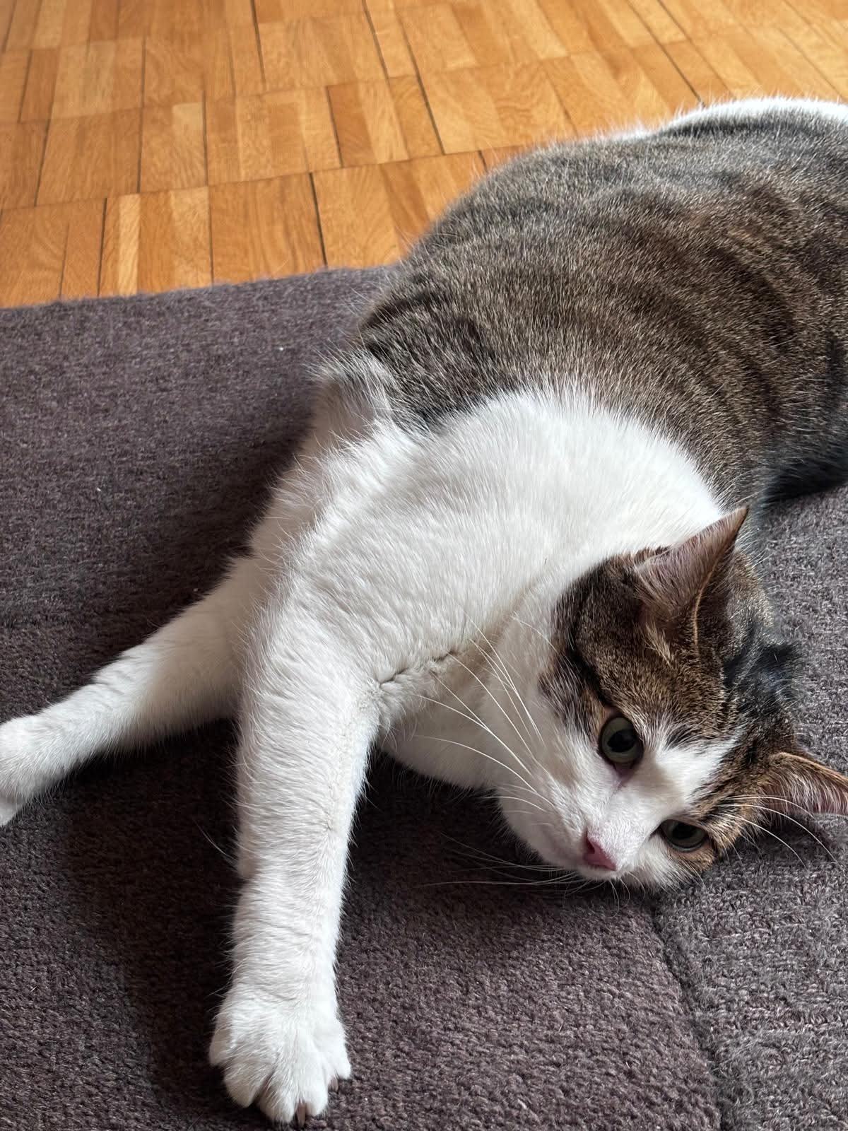 C’est une petite chatte très calme et habituée à la vie en appartement. Le parfait chat de compagnie en fait.